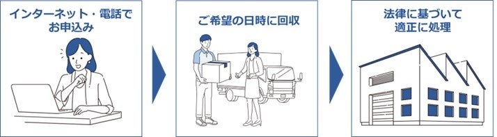 ・ インターネット・電話から申し込み後、収集運搬許可を保有する事業者が希望日時に ご自宅へ回収に伺い ます。