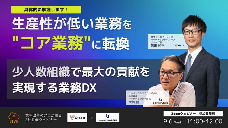 【9/6(水)11時開催】生産性が低い業務は、“コア業務”に転換!少人数組織で最大の貢献を実現する業務DXオンラインセミナー