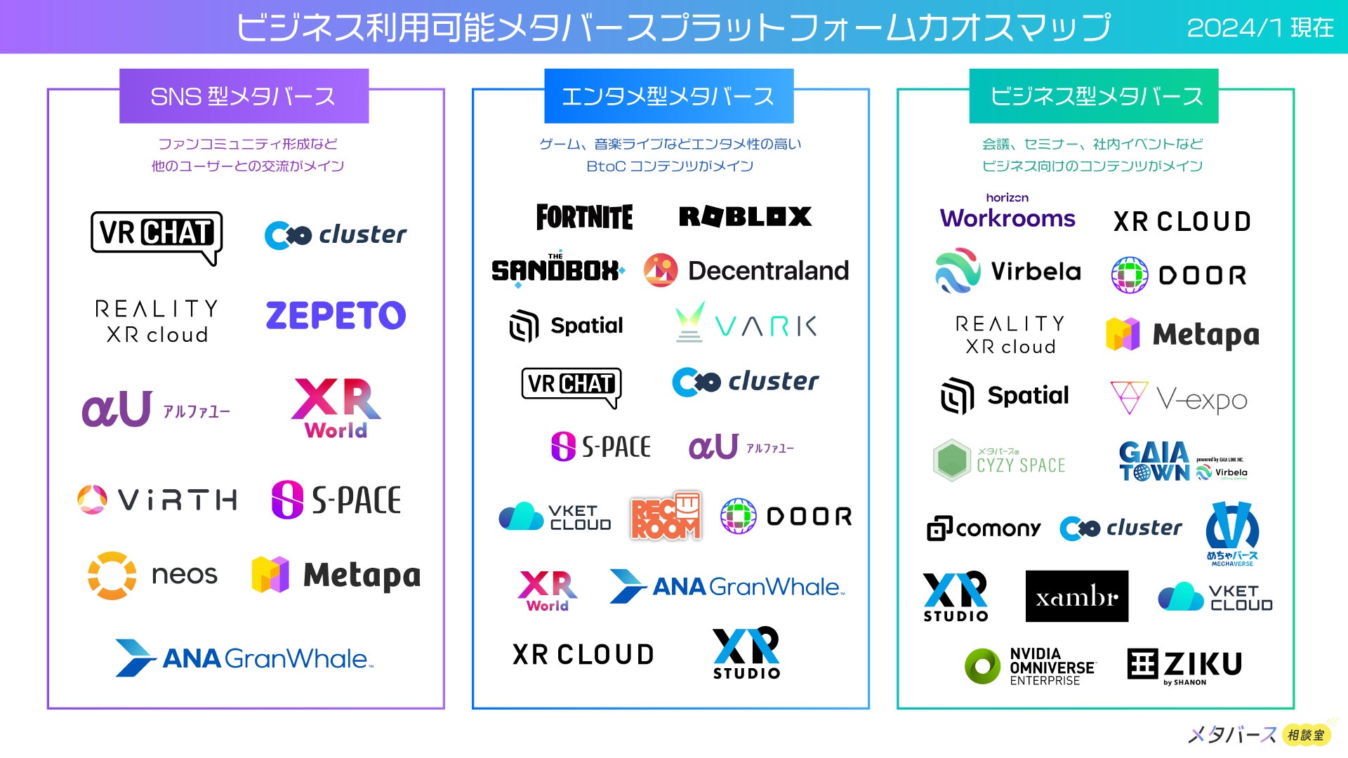 monoAI technology、「ビジネス利用可能なメタバースプラットフォームカオスマップ2024」を公開