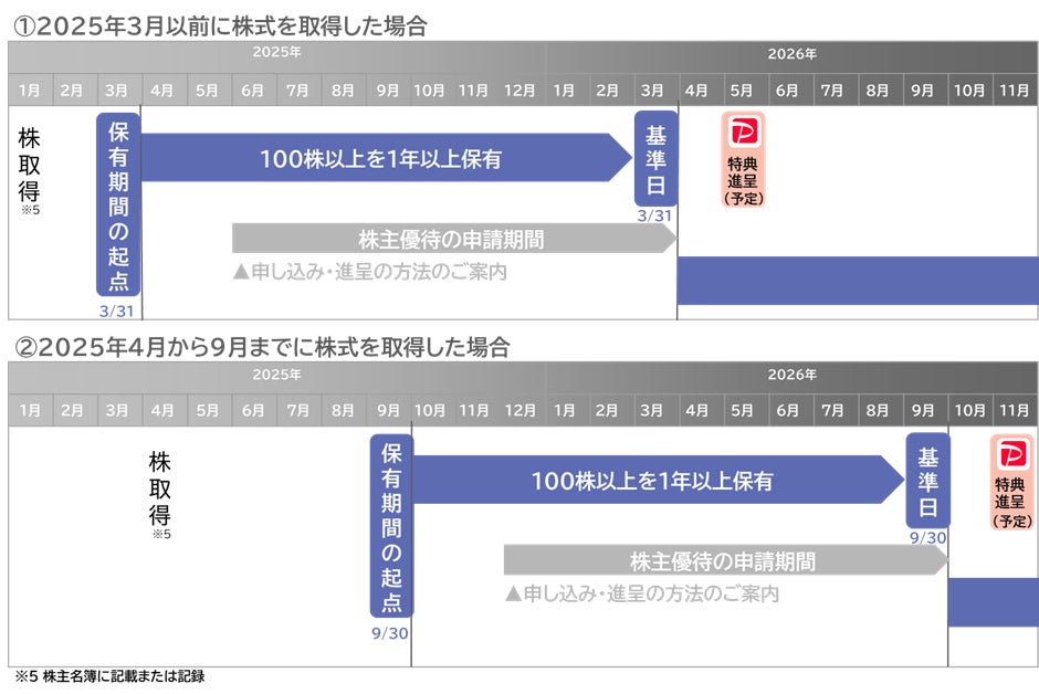 ※5 3月31日を基準日として株主優待を受けられた方は対象外です。ただし、翌年の3月31日まで100株以上保有していただくことで、再び株主優待を受けることができます。