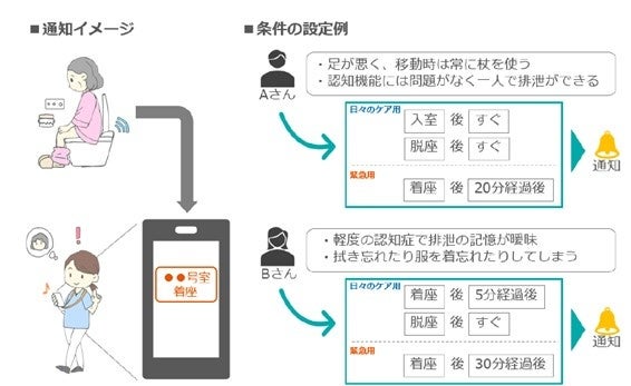 左:“トイレ利用通知“のトイレ、右:”排便管理“のトイレ