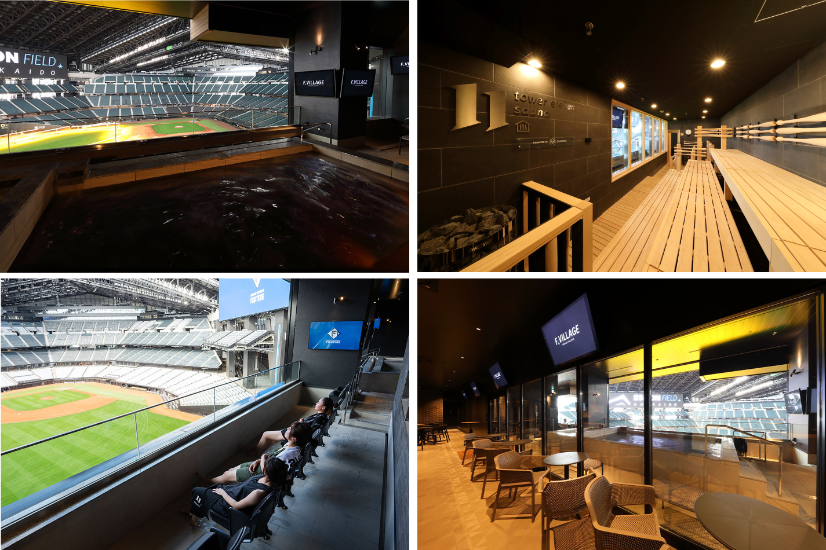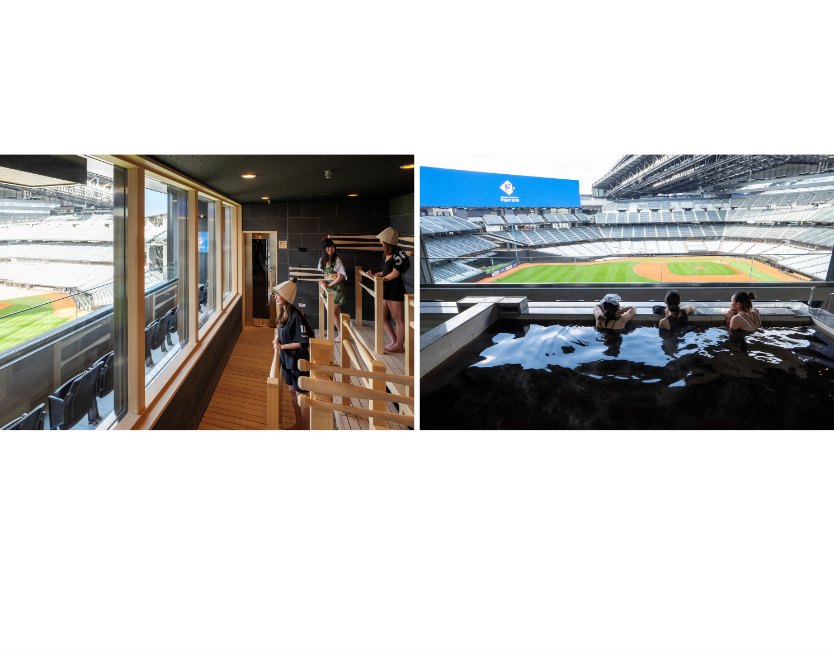 tower eleven onsen & saunaは、北海道日本ハムファイターズの新球場ES CON FIELD HOKKAIDOのレフト側ランドマークとなるビル「TOWER 11(タワー・イレブン)」3階に位置する、世界初の「フィールドを一望できる球場内天然温泉とサウナ」です。