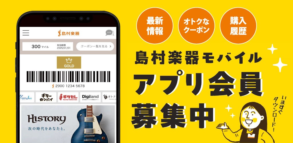 【会員数100万人突破!】公式アプリ「島村楽器モバイル」がマイル2倍付与など、お得なキャンペーンを4月25日(金)~5月6日(火・祝)の期間限定で開催。