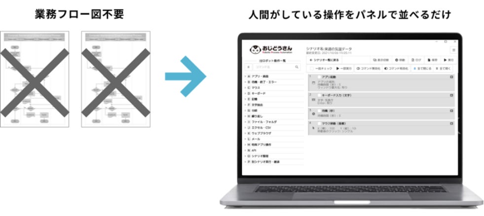 従来のRPAは、「フローチャート」を用いて開発する必要がありました。