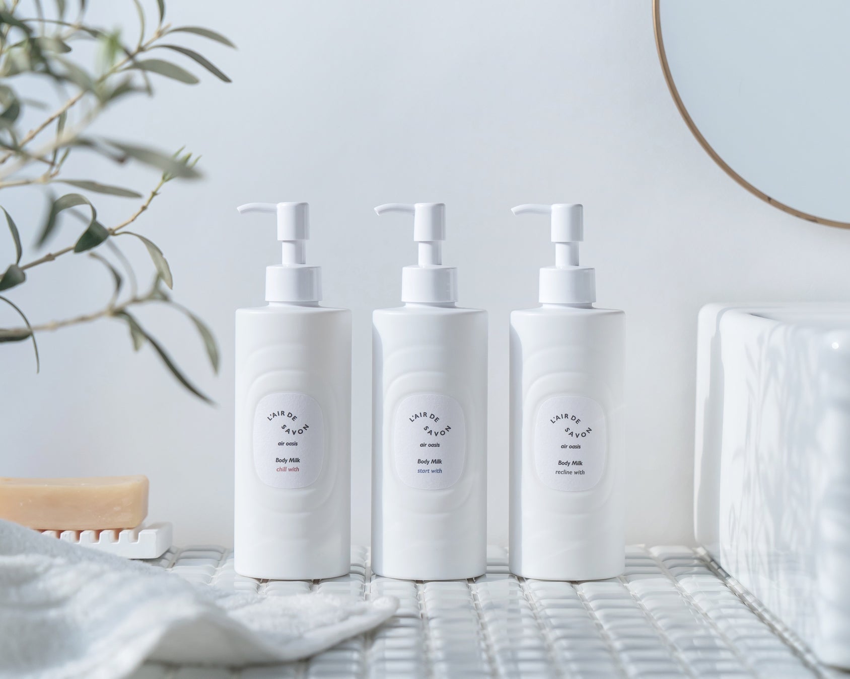“香りを楽しみたいけれど、周囲への配慮も大切にしたい”。そんな想いに応え、ライフスタイルブランド「レールデュサボン」から「エアオアシス」ラインは誕生しました。“柔軟剤以上、香水未満の香り”をテーマに、ふんわりと心地よい香りを楽しめるアイテムを展開しています。