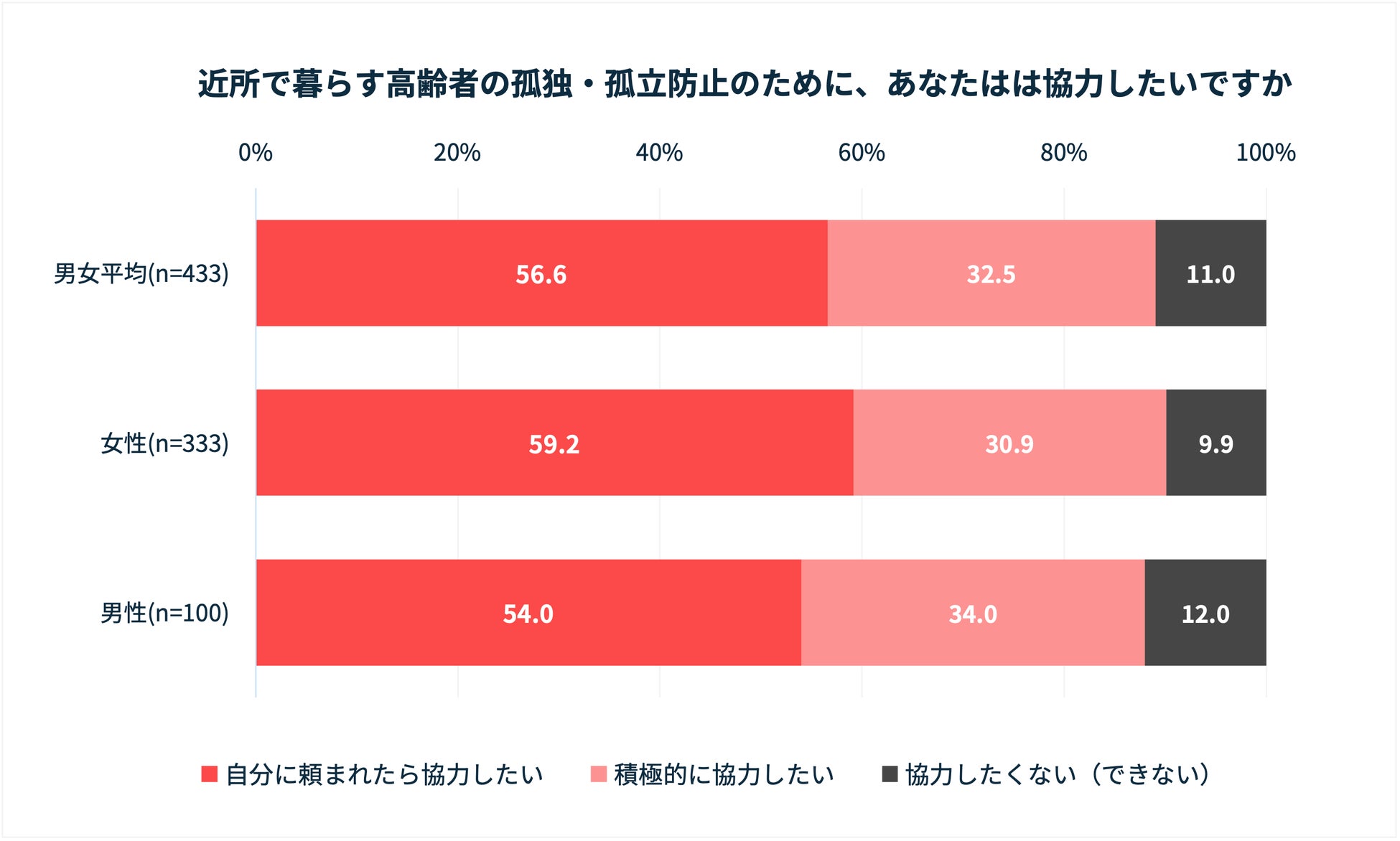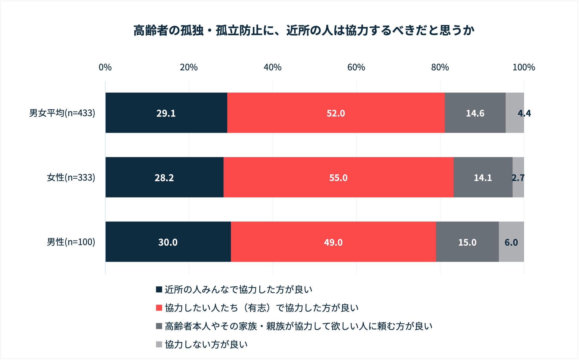 地域の高齢者の孤独・孤立防止は地域全体で協力するべき9割。ただし、強制ではなく「有志」で。
