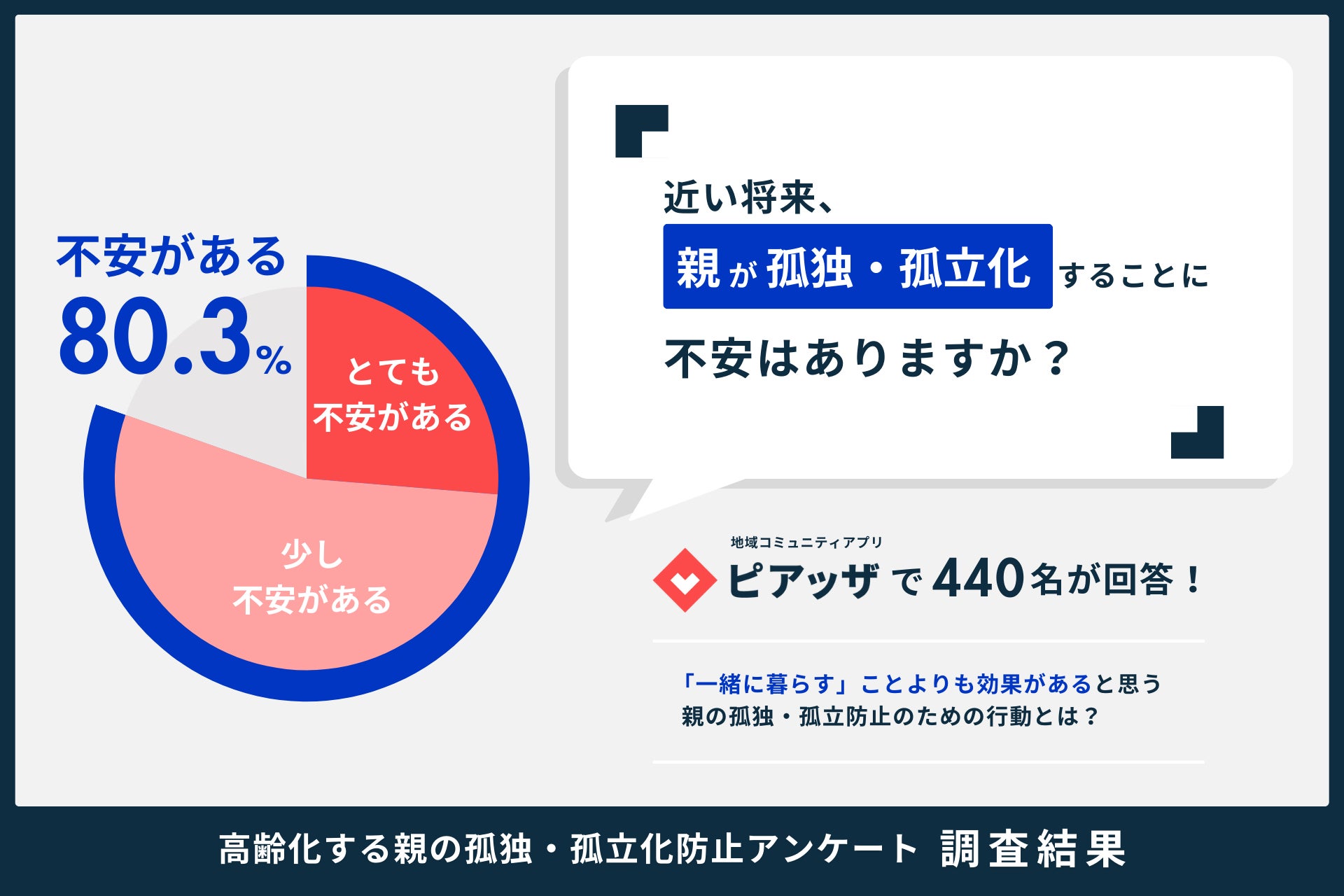 そこで、「人々が支え合える街をつくる」ことをミッションに掲げるPIAZZAは、地域コミュニティアプリ「ピアッザ」の利用者440名に、高齢化する親世代の孤独・孤立に対する意識および地域の高齢者に対する孤独・孤立防止への協力意向を調査しました。