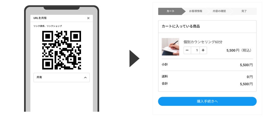 ペライチの機能として提供している「かんたん決済」シリーズを、「ラクスルPay」のユースケースに合わせて、サービス化しています。カートリンクや請求リンクなど、個人や中小事業者の販売状況に合わせて販売機会を逃さない工夫がされています。