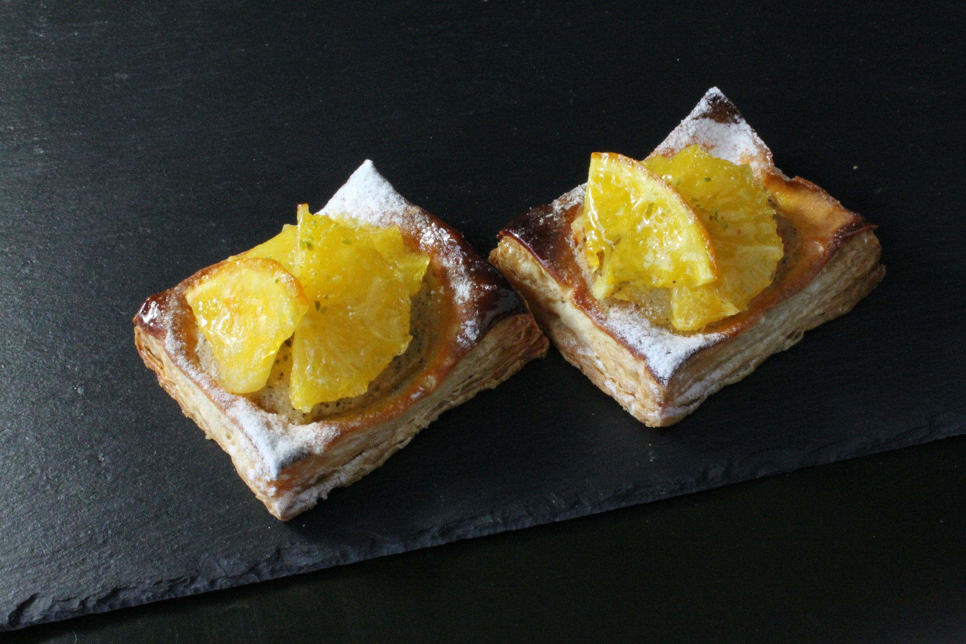 サクサクと歯切れの良いパイ生地に、熊本県産の甘夏と、アールグレイ入りのアーモンドクリームをのせて焼き上げました。皮は厚めですが無農薬だからこそより香りが良く、美味しく召し上がれます。オーブンで温めるとバターがリッチに香り、生地の香ばしさと甘夏の爽やかな甘酸っぱさが楽しめます。