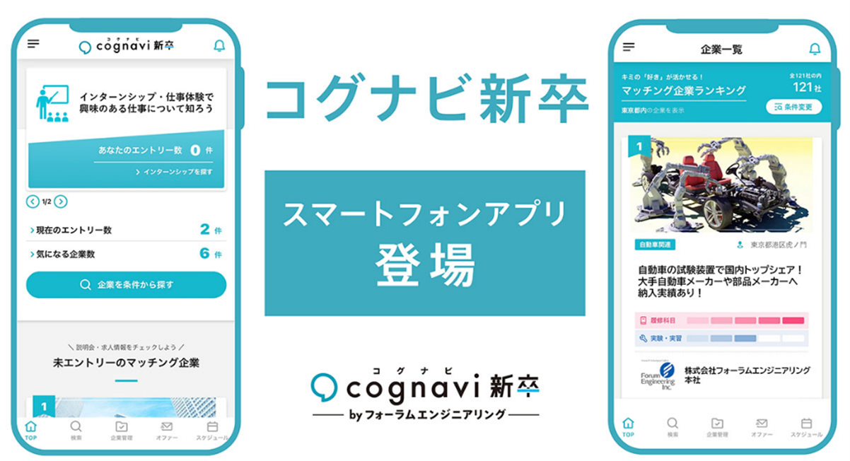 株式会社フォーラムエンジニアリングが提供するスマートフォンアプリ「コグナビ新卒」の開発に協力しました