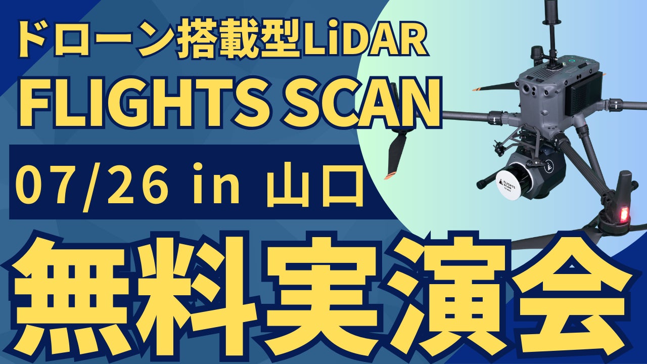 株式会社FLIGHTSは、建設・測量業界の生産性向上のためのドローンレーザー測量の普及を目指し、7月26日(金)に山口県で無料実演会を共催します。本実演会は、株式会社トリンブルパートナーズ中国(本社:広島県安芸郡、代表取締役:窪田 義則)、株式会社諏訪(本社:山口県宇部市、代表取締役:前田 拓史)との共催です。
