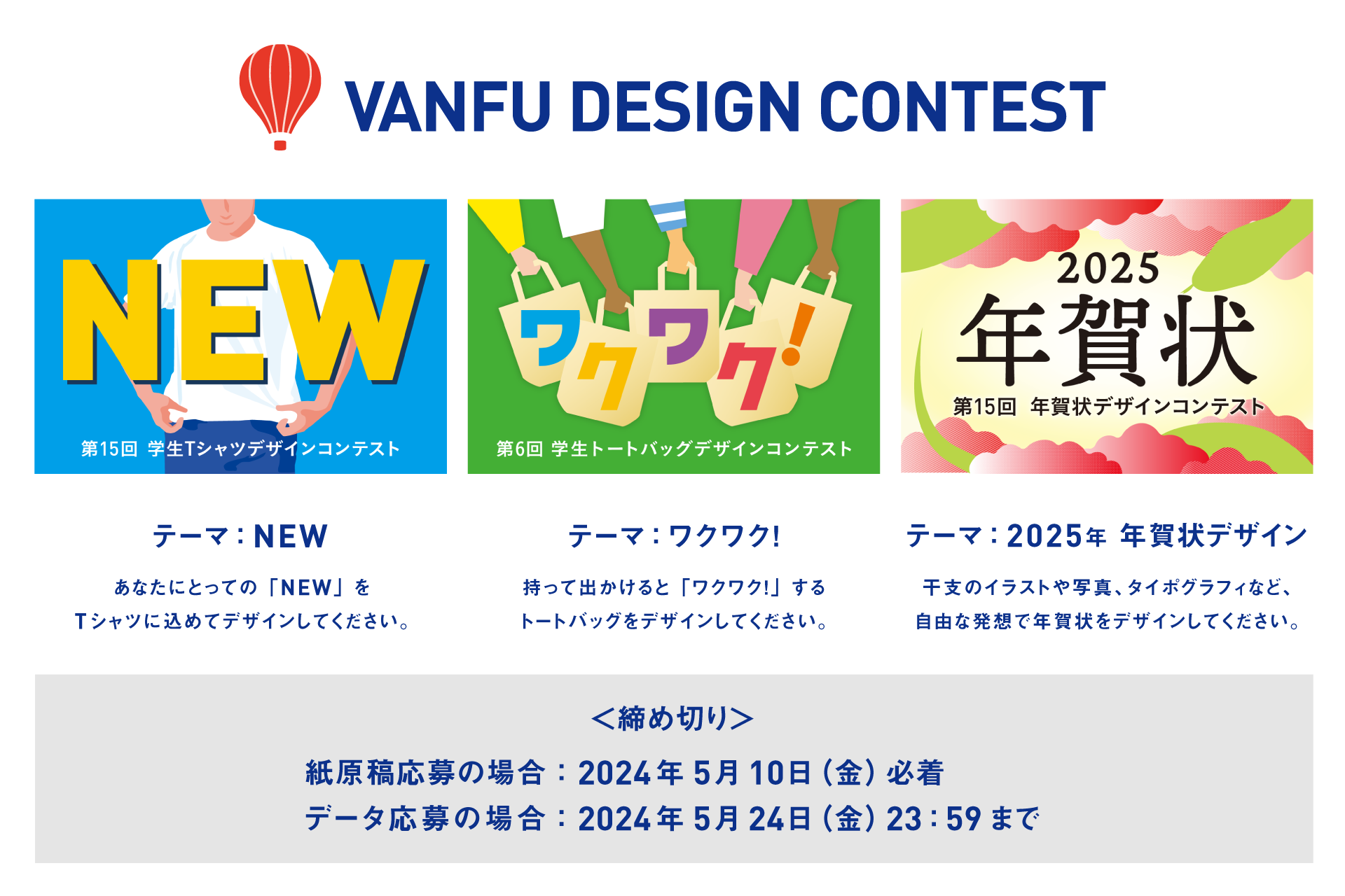 バンフー青山店へのウェア印刷機械の導入をきっかけに 『青山店のウェア印刷機械と、アパレル需要の高い立地を活かして何かができないか』 となり、「学生Tシャツデザインコンテスト」が設立されました。 並行して、社内から印刷会社らしさを活かしたコンテストをという声が上がり「年賀状デザインコンテスト」が並行して発案され、 2010年より2つのデザインコンテストがスタートしました。