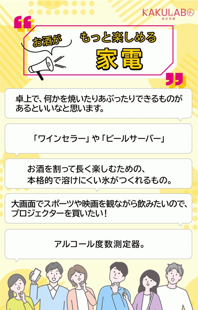 また、お酒を楽しむ環境づくりの家電を挙げる人もいました。