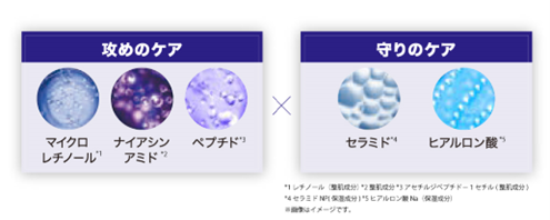 *1 肌に潤いを与え、なめらかにすることによる *2 レチノール(整肌成分) *3 欧米などの調剤薬局