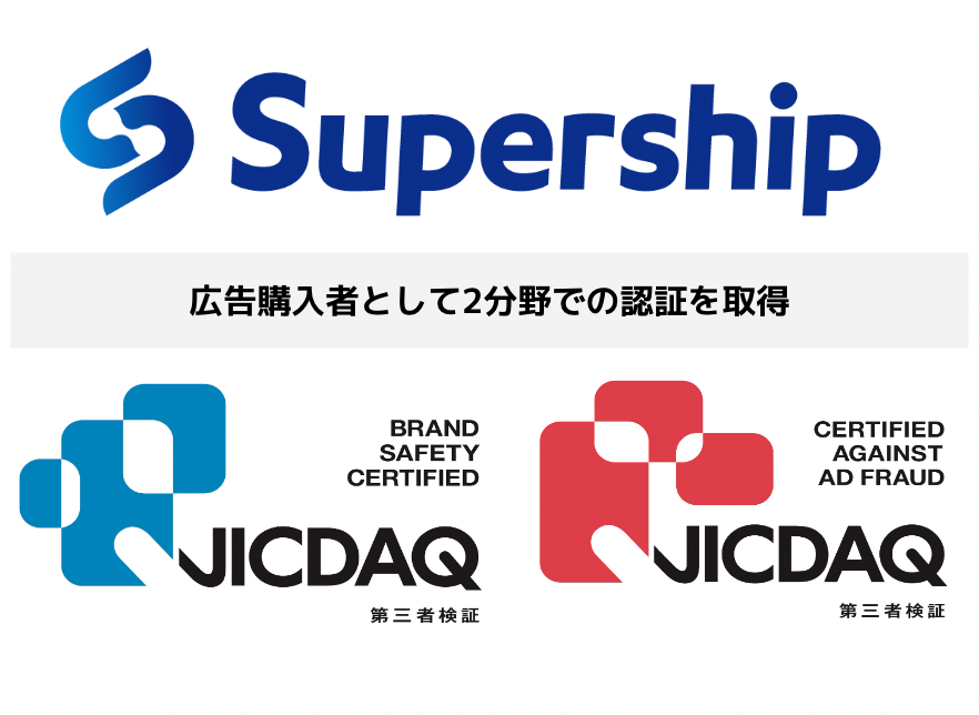 Supership株式会社(以下、Supership)は、一般社団法人デジタル広告品質認証機構「JICDAQ」が制定する認証基準に基づき、一般社団法人日本ABC協会による第三者検証のプロセスを経て、広告購入者(広告会社)として「ブランドセーフティ」および「無効トラフィック対策」の2分野で認証を取得しました。