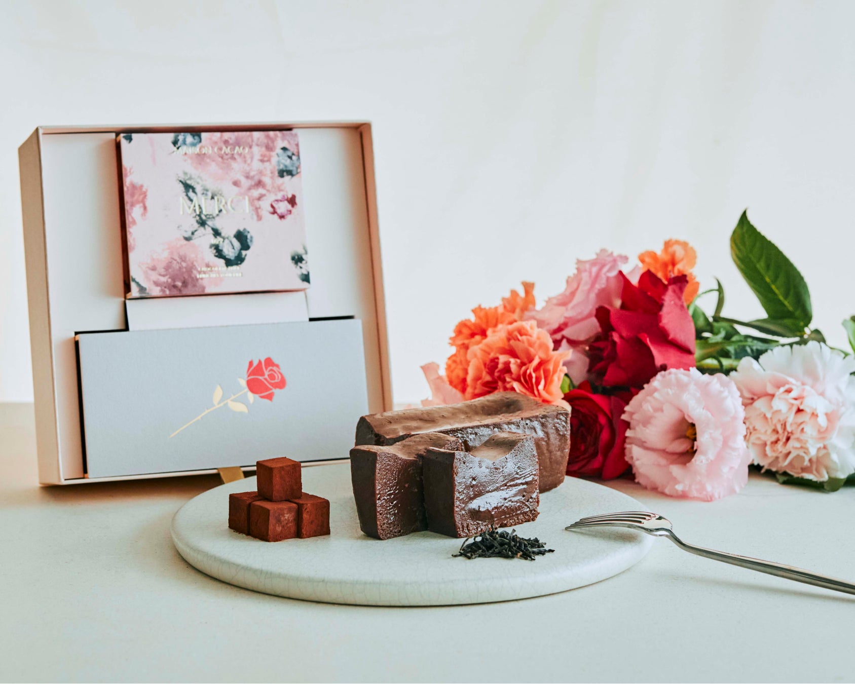 ご応募いただいた手紙の中から、厳正なる選考の上、5名さまに母の日を記念したアロマ生チョコレートと生ガトーショコラのセット、さらに記念品を贈呈いたします。