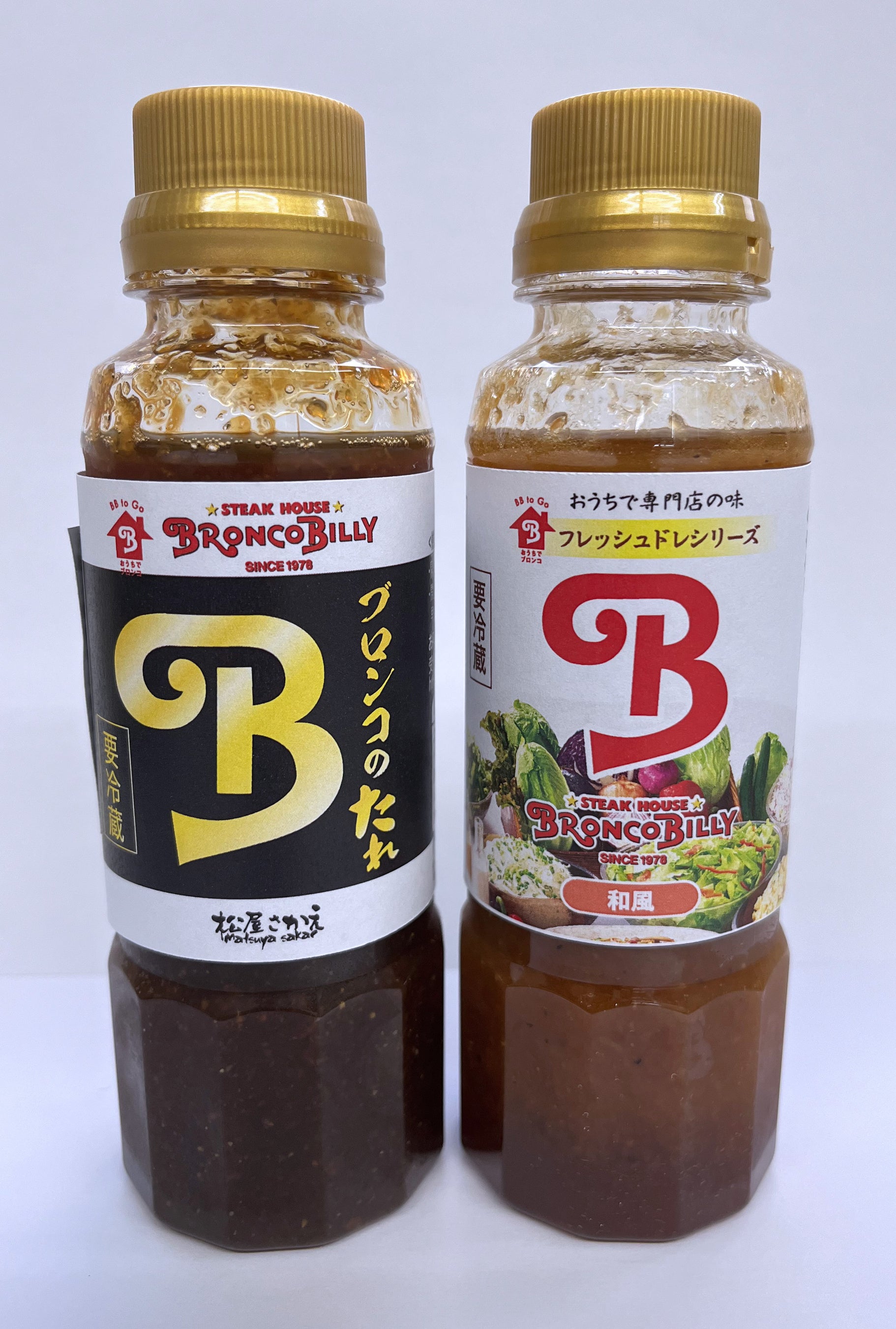 ステーキハウス ブロンコビリーを全136店舗展開する株式会社ブロンコビリー(本社:愛知県名古屋市 代表取締役社長:竹市 克弘)の子会社、株式会社松屋栄食品本舗(本社:愛知県犬山市 代表取締役社長:宮本 卓)は、ブロンコビリーで40年以上愛され続けてきた和風ステーキソース『ブロンコのたれ』と、人気No.1ドレッシング『和風ドレッシング』を、3月26日(火)より中部地区の一部スーパーで販売いたします。数種類の野菜や果物を生のまますりおろし、風味豊かな香りと味わいが贅沢な、チルドタイプの商品です。