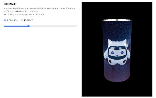 3. 使用する画像をアップロードし、「曲面の設定」で認識する曲面の曲がり具合を設定する