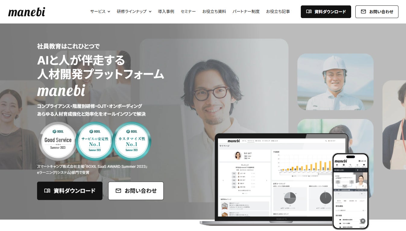 株式会社manebiは、「人生開発を当たり前の世の中に」をビジョンに掲げ、人材開発プラットフォーム「manebi」を提供しており、⼤企業から中小・ベンチャー企業まで3,500社超の幅広い規模や業種の皆さまにご利用いただいております。