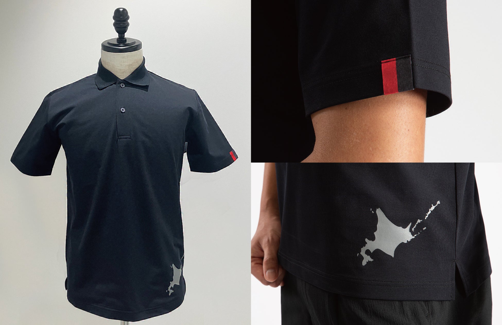 併せて、オリジナルモデルのポロシャツも数量限定で販売します。素材にはポリエステル100%の吸水速乾生地を採用したアイテムです。黒無地のボディをベースに、袖口にはチームカラーのワンポイント、裾口には北海道のシルエットをプリントしました。夏に向けて快適に着用いただける一着です。
