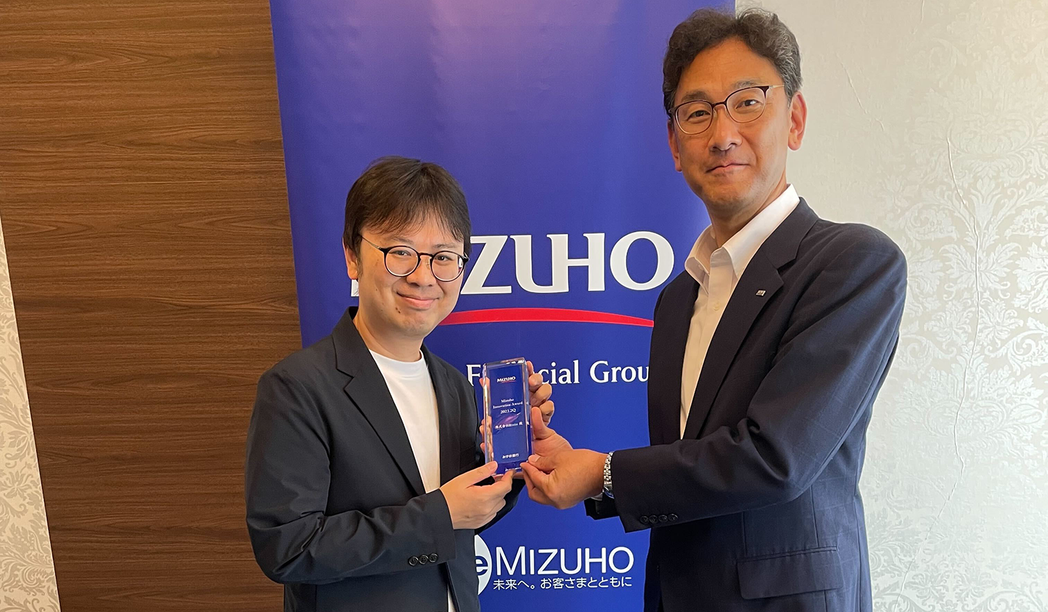 「Mizuho Innovation Award」は、イノベーティブな事業に挑戦するスタートアップ企業の成長をサポートしていく観点から、有望なイノベーション企業を表彰するため、みずほ銀行により創設された賞です。四半期ごとに、ビジネスモデルの優位性、チーム力、成長可能性などを評価の軸として対象企業が選定され、表彰されます。さらに表彰企業には、ビジネスマッチングなどみずほ銀行からの各種サポートが提供されます。