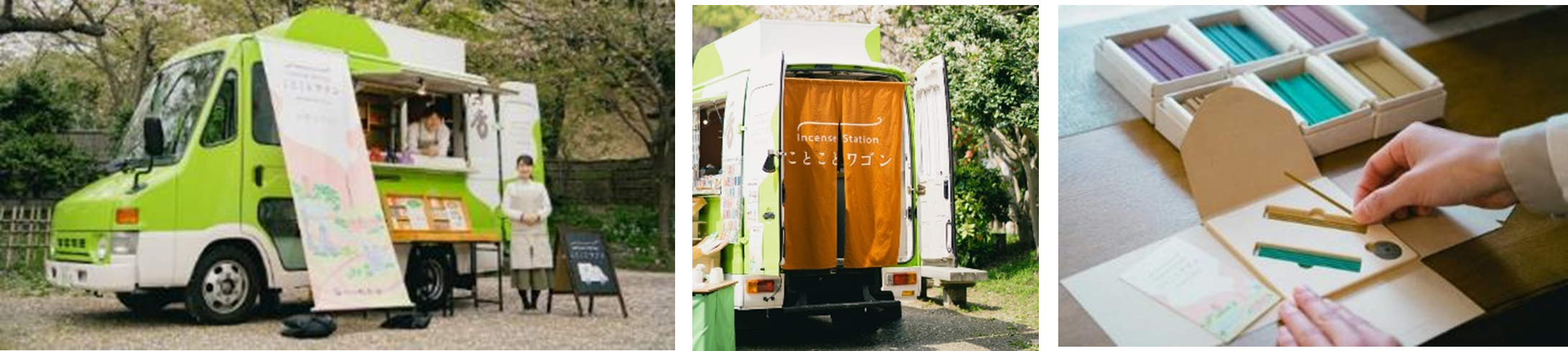 松栄堂は、およそ300年前の創業時より、薫香類を取扱う、京都老舗のお香メーカー。「幅広い世代の方に気軽に香りと出会える場を作りたい」と考えた社員のアイデアがきっかけとなり、「移動販売車」という新しいスタイルでの販売を行っています。