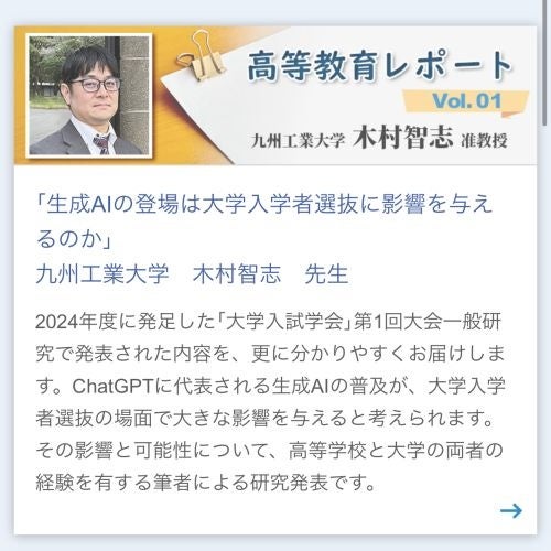 木村先生寄稿レポート「生成AIの登場は大学入学者選抜に影響を与えるのか」