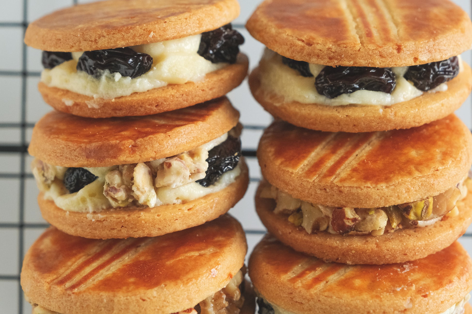 大粒の完熟レーズンをラムシロップに漬け込みたっぷりサンドしました。