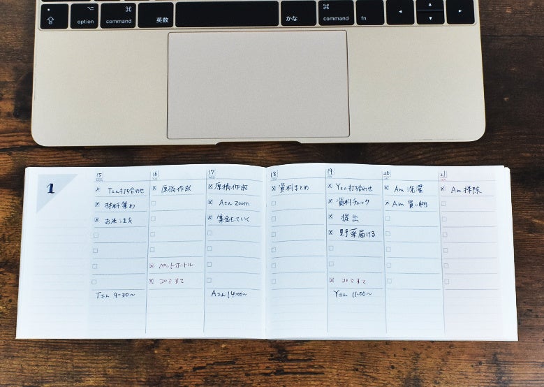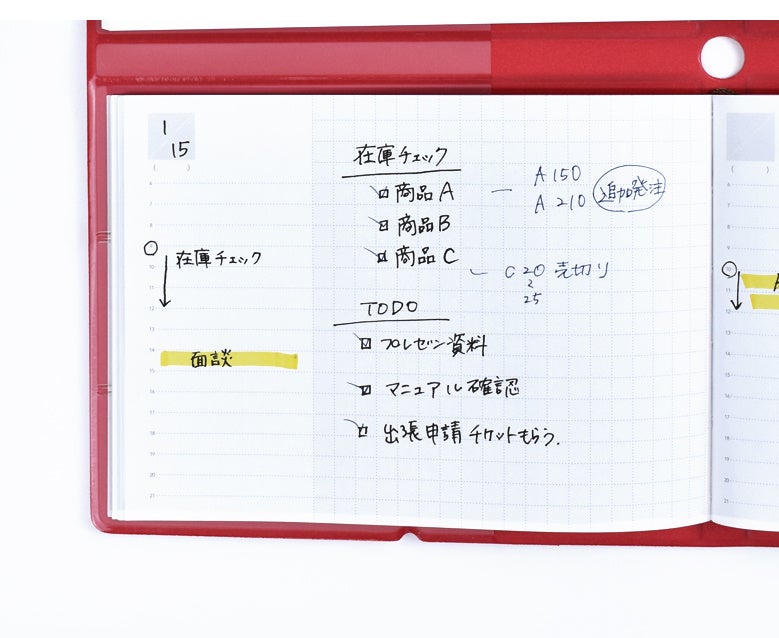 ・横長A6サイズ(リフィル)パソコンの前に置いて記入できる。