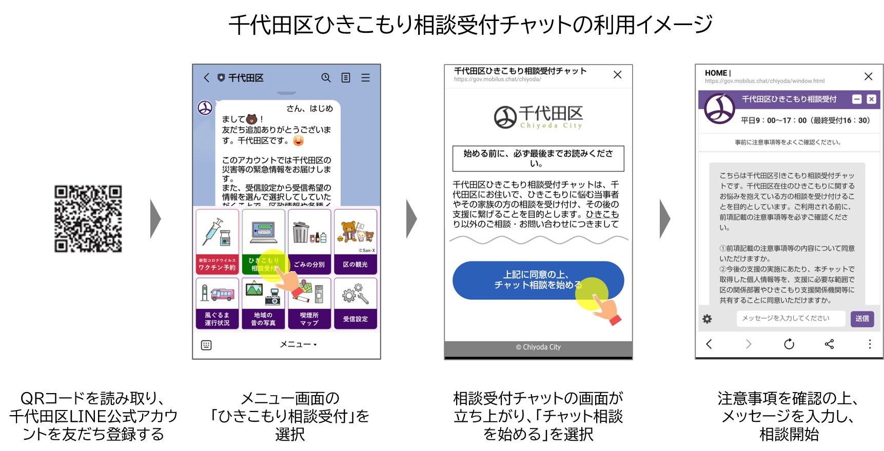 「千代田区ひきこもり相談受付チャット」は、ひきこもりの当事者やその家族が相談しやすい環境を検討することを目的として、試行的に2022年3月1日から2022年3月31日までの1カ月間運用される、LINE公式アカウントを入口としたチャット相談窓口です。