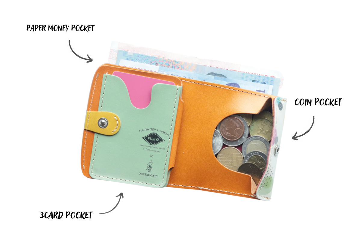 そんな老舗豆菓子店は今年で110周年を迎え、周年を記念して「小さいふクアトロガッツ」とコラボしたミニ財布が誕生しました。