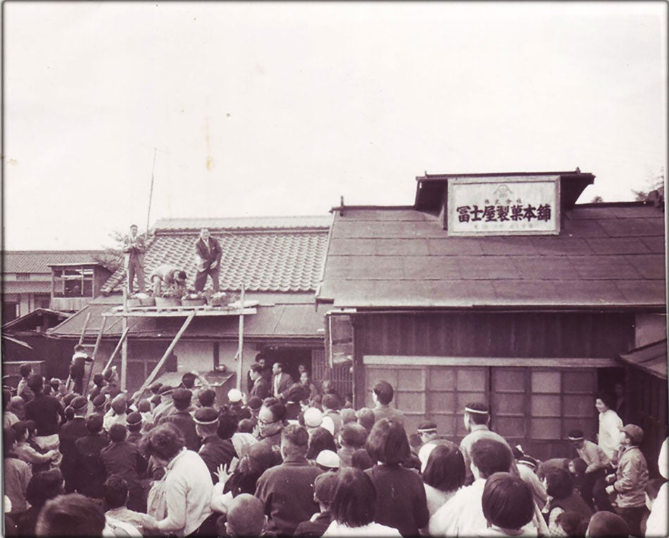 戦中の材料不足により製造を一時中断していましたが、戦後、昭和22年に「冨士屋製菓」の屋号を引き継ぎ、昭和28年「株式会社冨士屋製菓本舗」となり、以来、2代目北野啓史、3代目北野登己郎と引き継がれています。