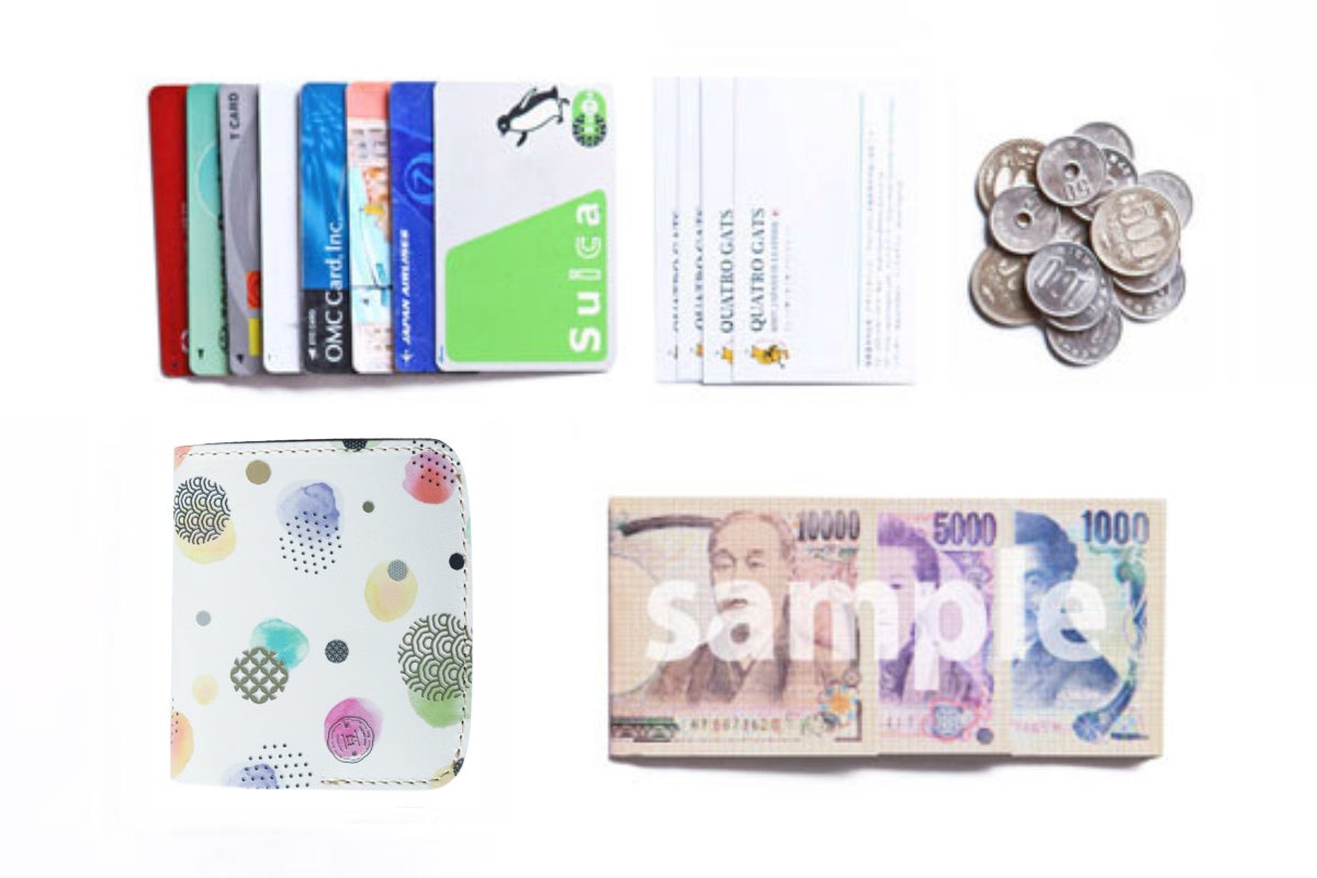 カード 約9枚・小銭 約20~30枚・お札 約20枚