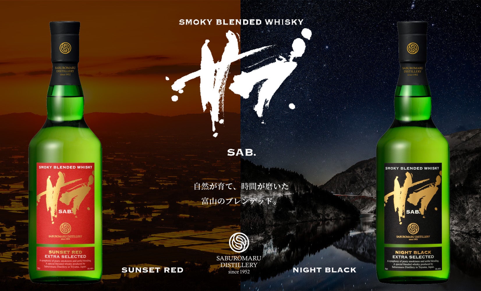 三郎丸蒸留所は、1952年のウイスキー製造開始以来、70年以上にわたり「スモーキーな香り」にこだわったウイスキーづくりを続けてきました。従来の一般的なウイスキーは、高級感を引き出すために重い瓶を使用し、かつウイスキーの色を見せるために透明瓶を使用するのが一般的でした。故に、多くの蒸留所ではカラメル着色によって色調を一定にする手法が用いられています。今回、三郎丸蒸留所のブレンデッドウイスキーSAB.(サブ)シリーズ(2024年12月発売)では、逆転の発想によりウイスキーは無着色で自然由来の香味のまま、その商品ボトルに適度な透過性を保ちつつ、「スモーキーウイスキー」のアイコンとして世界で認識されているグリーン(緑色)を採用。再生カレットを90%以上使用し、従来のウイスキーボトルよりも23%軽量化された「エコグリーン瓶」の開発により、年間13.5tのCO2削減効果も見込めます。発音しやすい「サブ」の名前と共に、本商品シリーズを環境意識が高いグローバル市場に展開していきます。