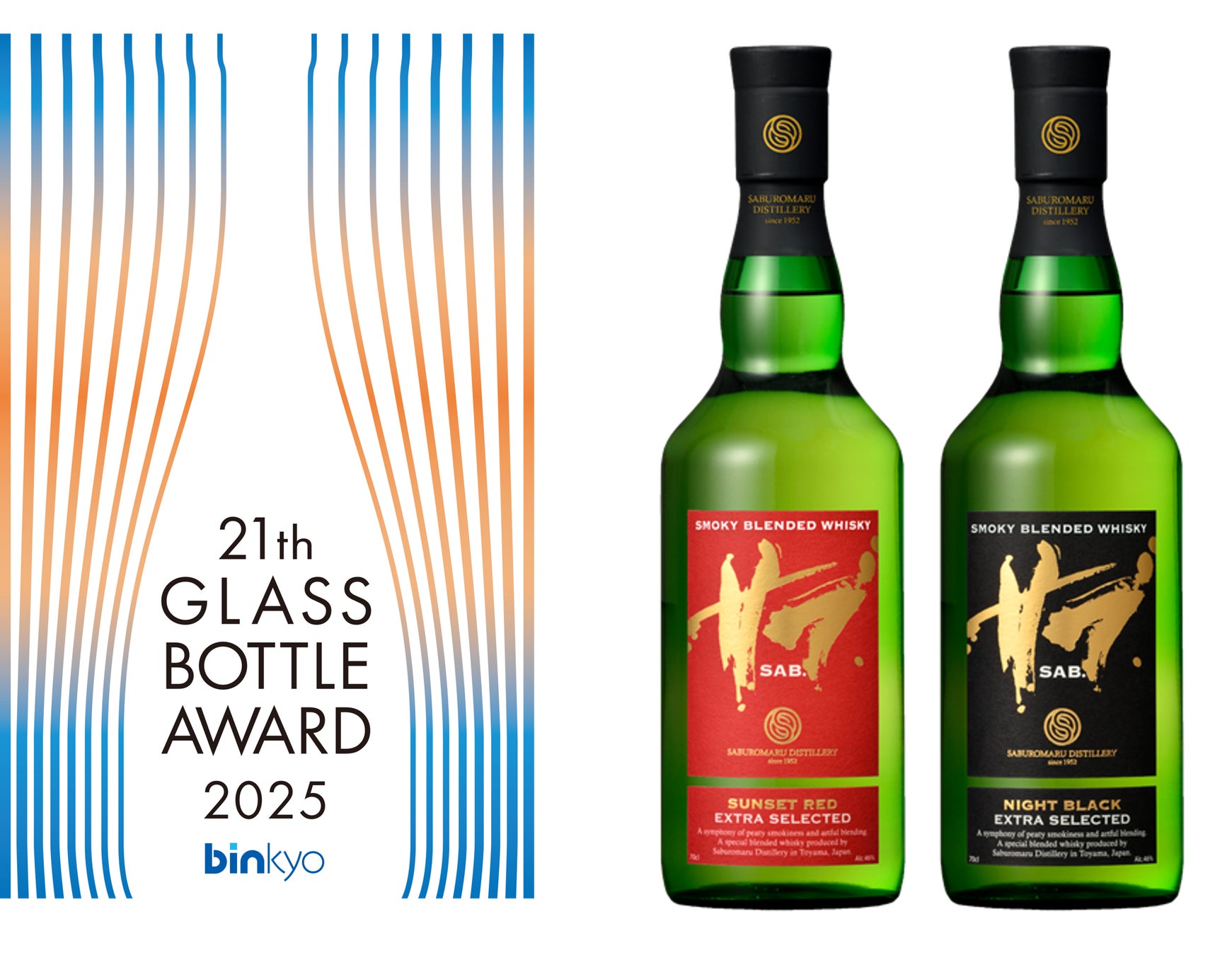 このたび、若鶴酒造株式会社 三郎丸蒸留所(本社:富山県砺波市三郎丸、代表取締役社長:稲垣貴彦)のブレンデッドウイスキーSAB.(サブ)シリーズに使用しているエコグリーン瓶が、日本ガラスびん協会が主催する第21回ガラスびんアワードにおいて、「環境配慮商品」を受賞したことをご報告いたします。