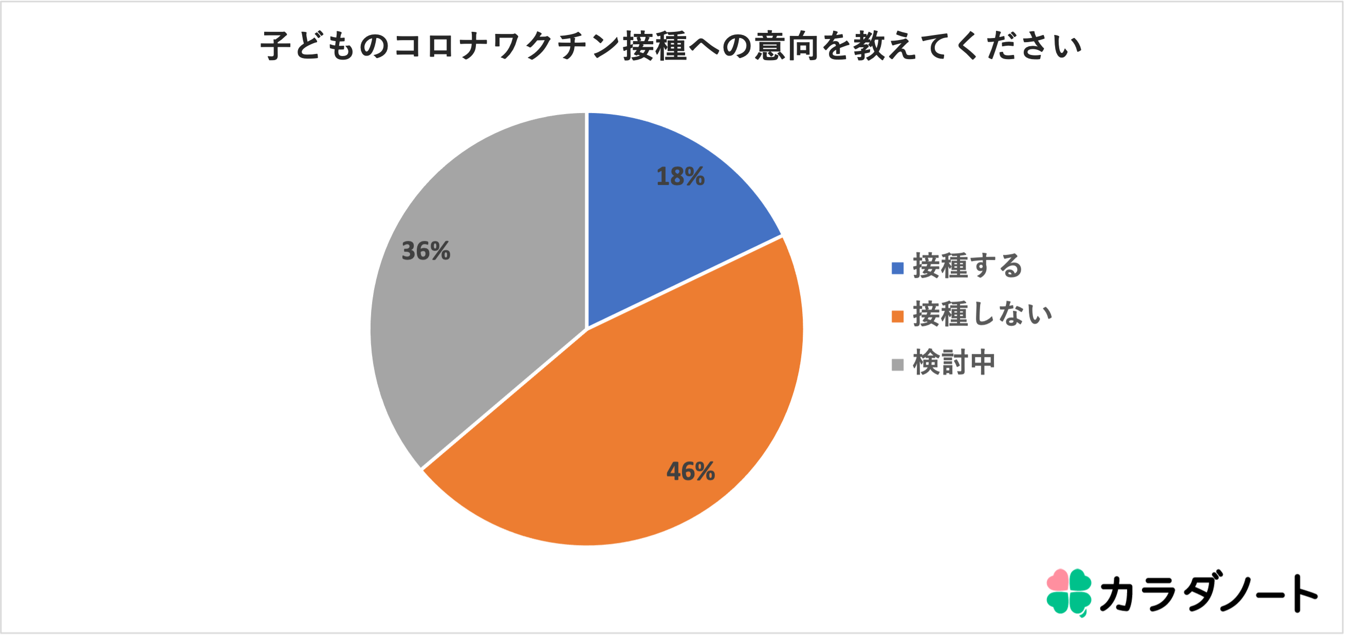 「家族の健康を支え笑顔をふやす」をビジョンとし、家族と向き合う全ての人のアシスタントとして心身ともに健康な生活を支援する事業会社である株式会社カラダノート(東京都港区/代表:佐藤竜也/以下当社)は、カラダノートサービス利用者を対象に「子どもへのコロナワクチン接種の意向調査」を実施したため、結果をお知らせいたします。
