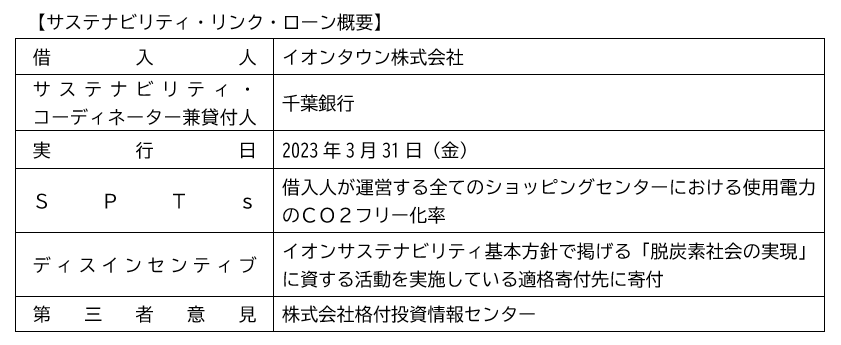 イオンタウン株式会社向けサステナビリティ・リンク・ローンの取組みについて