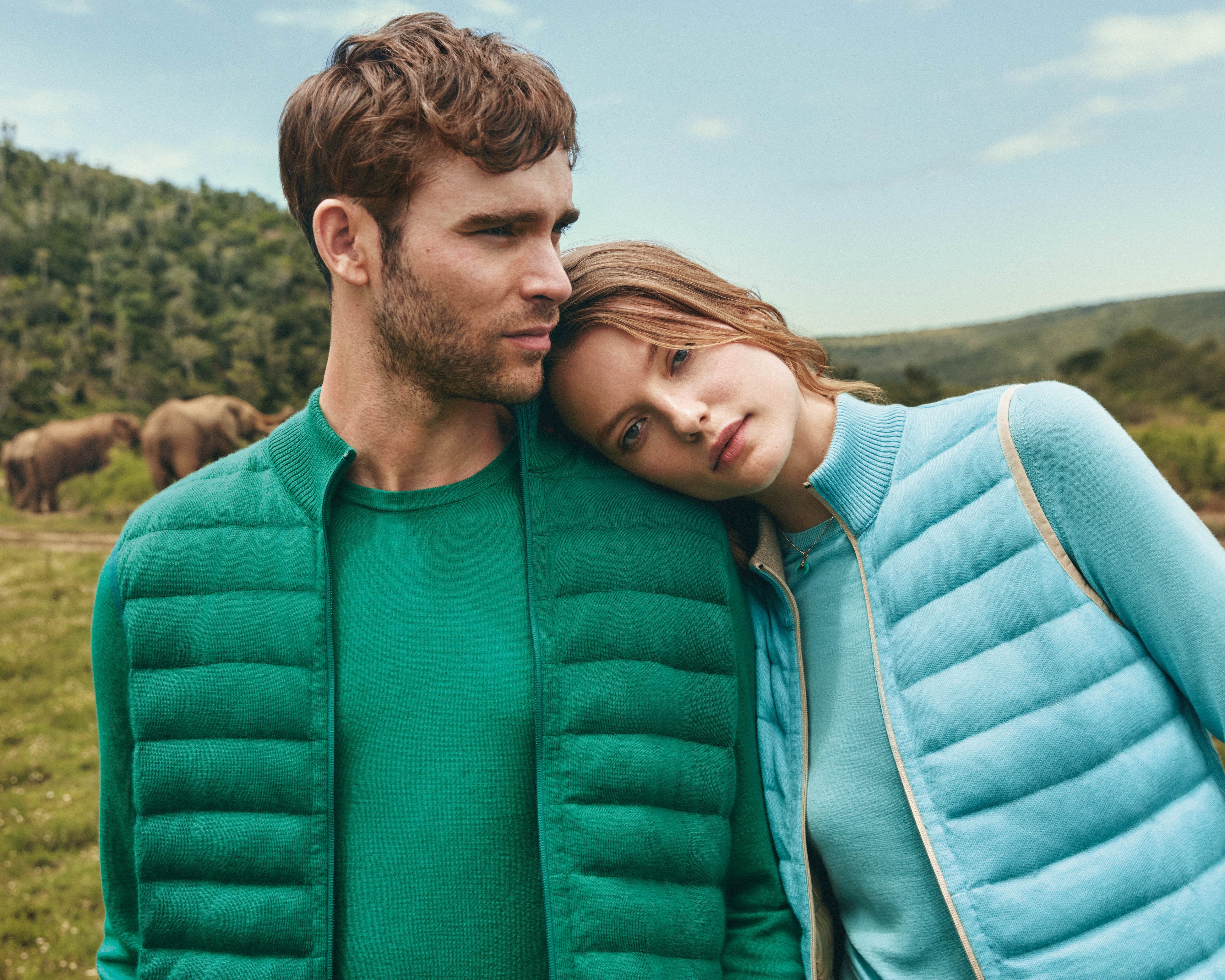 FALCONERIのアイコニックななカシミヤ「ウルトラファイン2.50」セーターは、滑らかな手触りのカシミヤニットセーターで、保温性と通気性に長けたアイテムです。春の新色は春空のような爽やかなライトブルーをはじめ、新鮮な桃のようなピーチピンクなど華やかなカラーパレットが揃います。また、肌寒い春先に便利なカシミヤライニングのダウンベストもベーシックカラーに新色を加えて登場します。