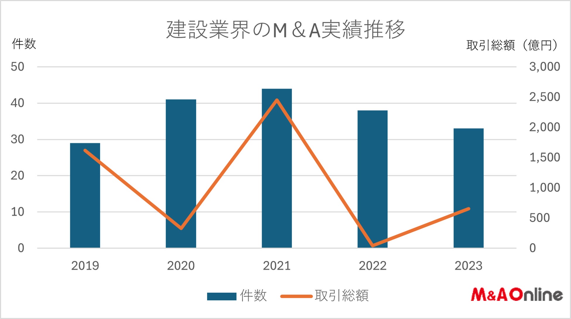 【建設業界のM&A】2023年度の件数は2年ぶりに減少も、取引総額は2年ぶりに増加