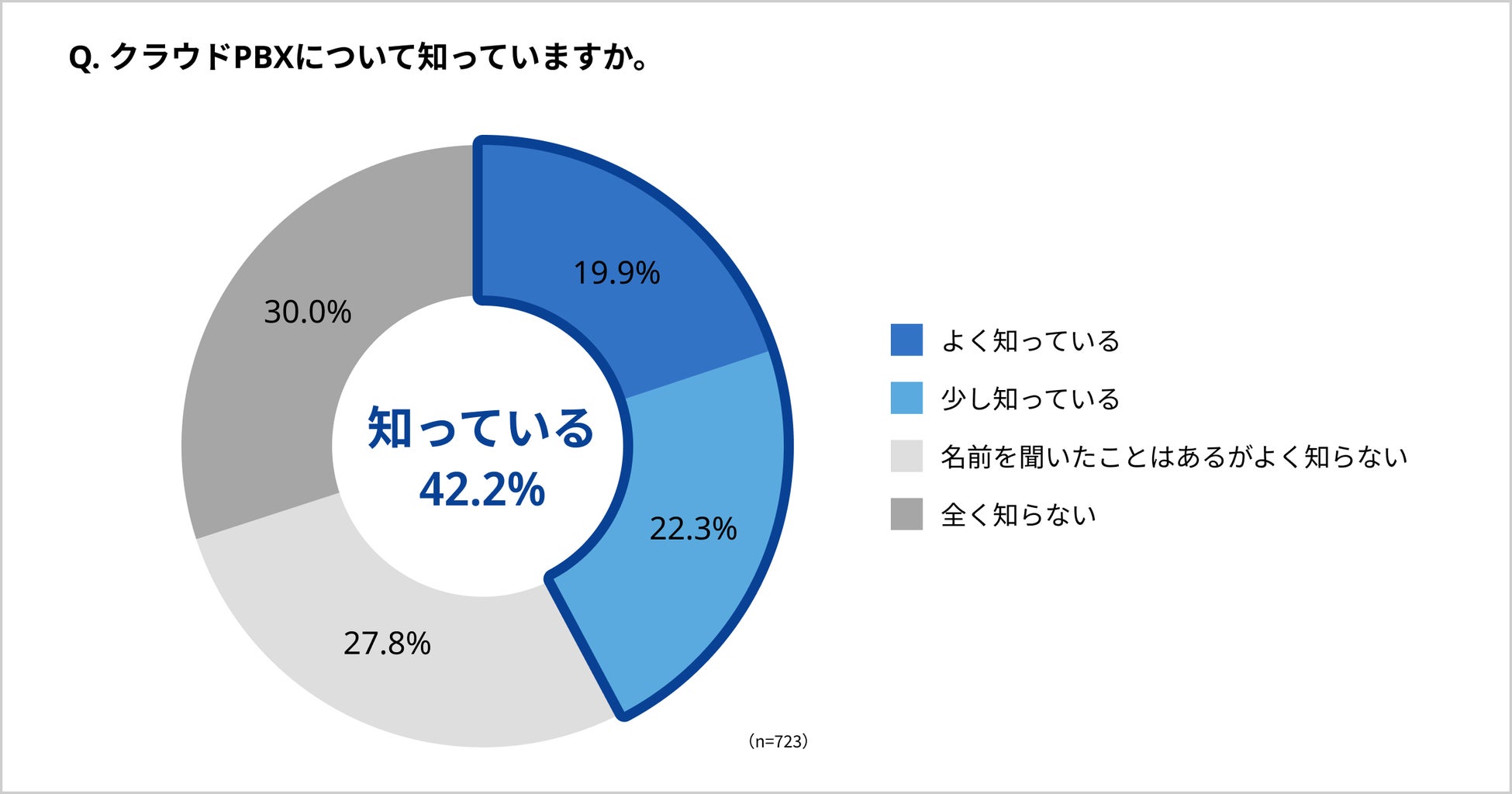 クラウドPBXについて知っているかを質問したところ、知っていると回答した人は42.2%(「よく知っている」と「少し知っている」の合計)でした。