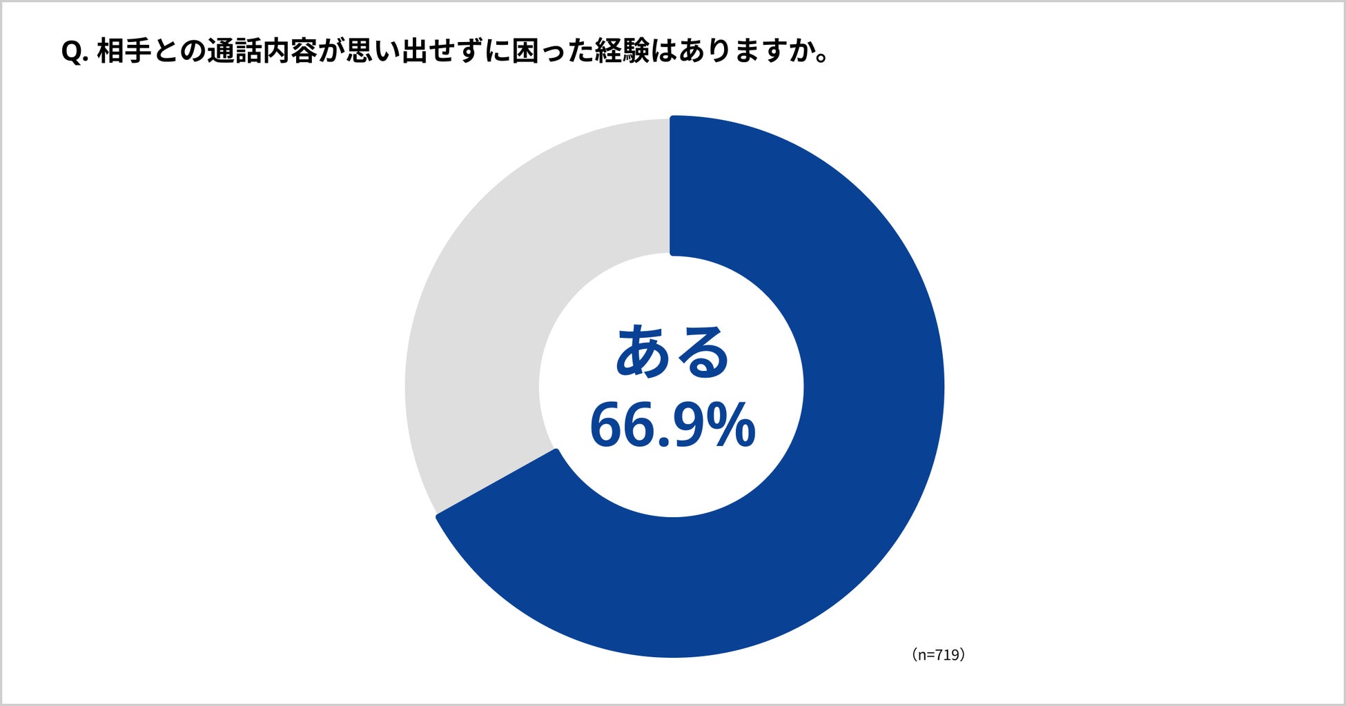 相手との通話内容が思い出せずに困った経験があるかという質問について、「ある」と回答した人が66.9%となりました。