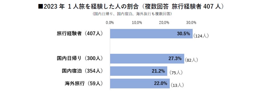 ・2023年の旅行経験者のうち、30.5%が1人旅を経験したと回答。