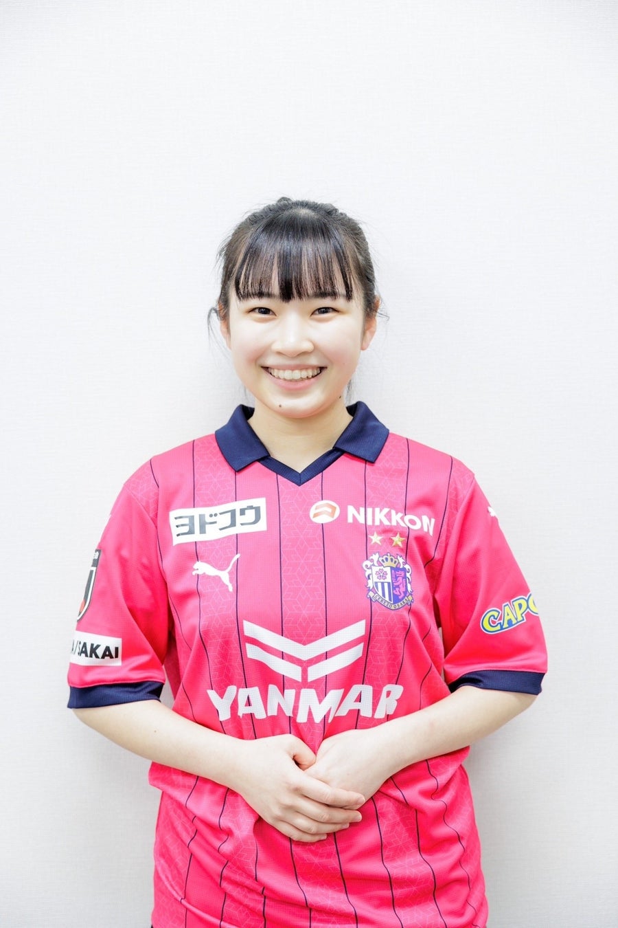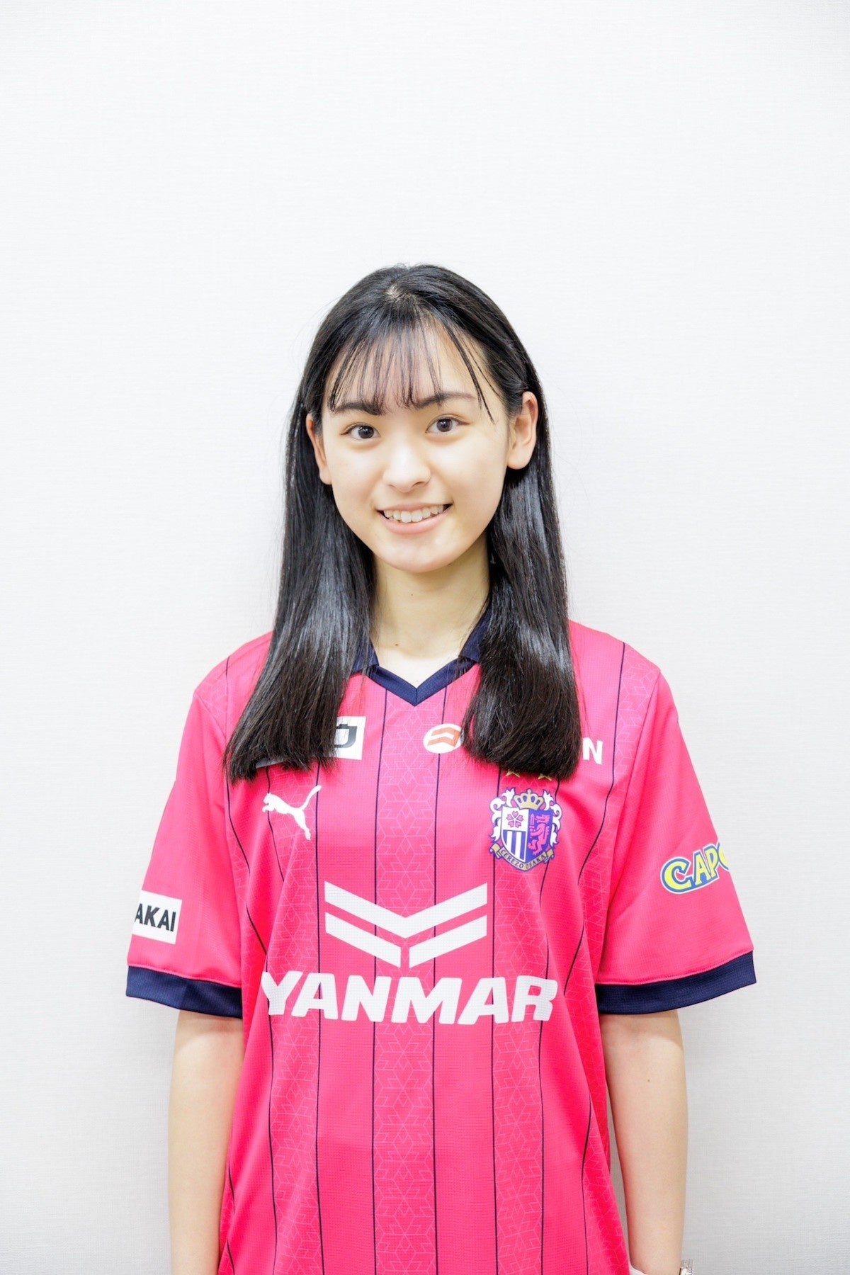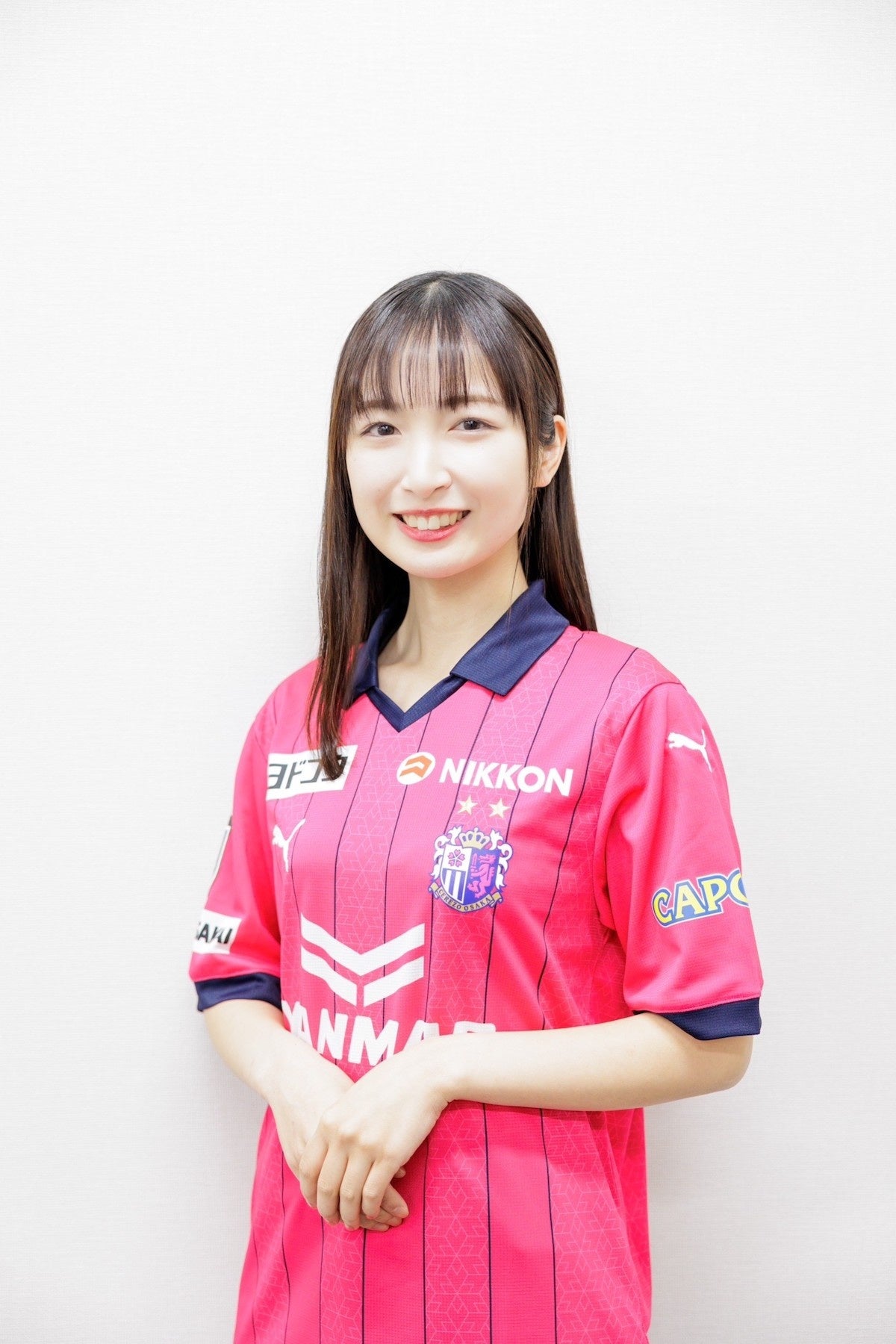 「2022シーズンに続き、2023シーズンもセレッソガールに就任いたしました、山川明香音と申します。セレッソ大阪の為に私自身が出来ることを全力で取り組んでいきます。サポーターのみなさん、一緒に盛り上げていきましょう!よろしくお願い致します!」