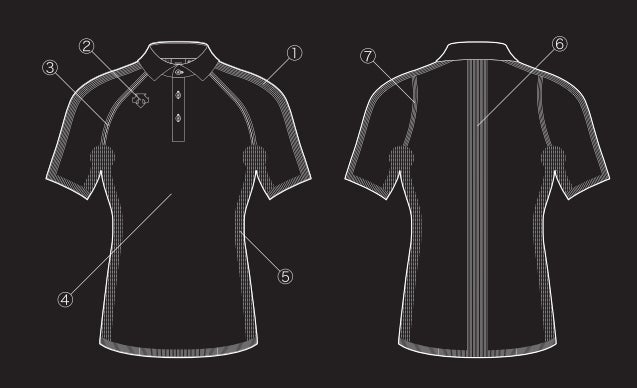 また、「トリポーラス」は、炭化したもみ殻がベースとなっているため濃色の素材になります。この濃色をあえて生かし、「デサントゴルフ」の象徴的なカラーであるブラックのシャツに仕上げました。一方で黒は熱を吸収しやすいため、組み合わせる「RENU®」に、通常の黒色に比べ温度上昇を抑制できる「涼黒®」(※)加工を施しました。さらに、ゴルフウェアとして必要な吸汗性やUPF50+のUVケア機能に加え、独自のパターン技術を生かしたスイングのしやすさといった快適性にもこだわり、スッキリとしたデザインも特徴です。もみ殻や古着といった、従来は廃棄されていたものを資源として再利用しながら、夏のゴルフを快適にする機能を融合させたオリジナル素材を用いたポロシャツです。