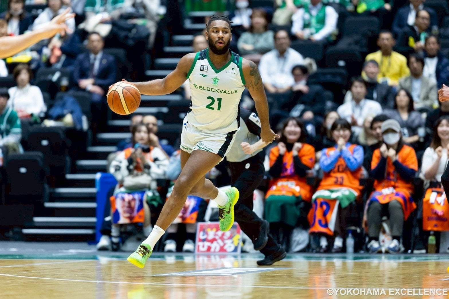 今シーズン、残りのホーム戦は「神奈川県民デー」開催となる寒川や平塚開催、そして「GREEN WAVE DAYS」としてクラブ史上最多来場者数記録樹立を目指す横浜BUNTAI開催を控えていることもあり、ラスト4試合となった横浜武道館開催試合の1試合目。さらにここから7試合中6試合をホームで迎える試合日程。ホームでの試合が続くシーズン終盤戦、勢いをつける勝利を掴みとりたい一戦は「#10. 永野威旺」が立ち上がりから9得点をあげる活躍もあって「26-20」で1Q終了。