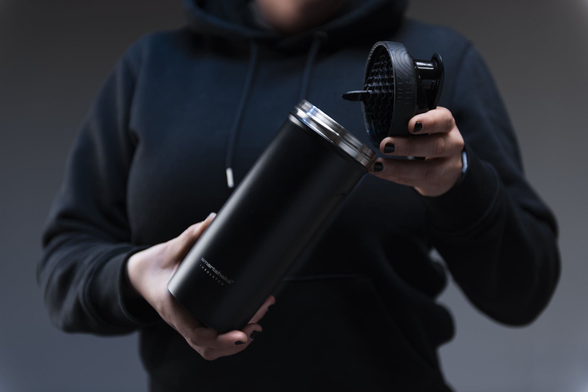 ついに待望のダブルステンレスシェイカーが発売!外観は肌触りのいいシックなブラック。