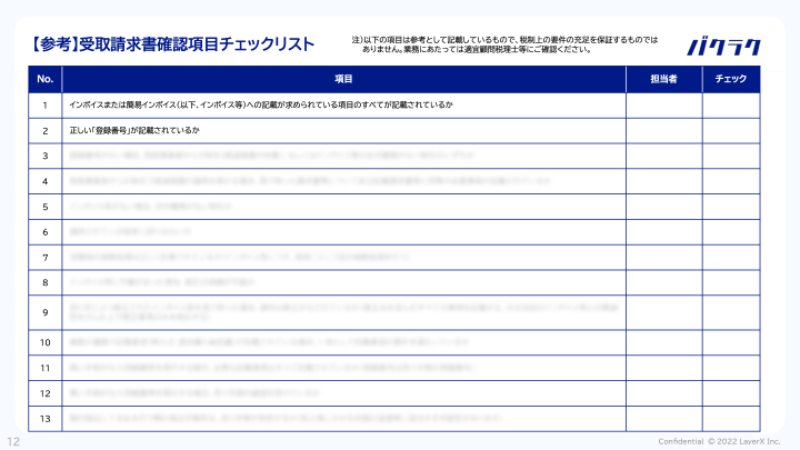 今回公開した「インボイス制度による“請求書受取業務”の影響まるわかりガイド」では、インボイス制度の概要に加えて、買い手(請求書受取側)が実務において準備するべきことについて、実務で使えるチェックリストも交えながら、公認会計士がわかりやすく解説しています。