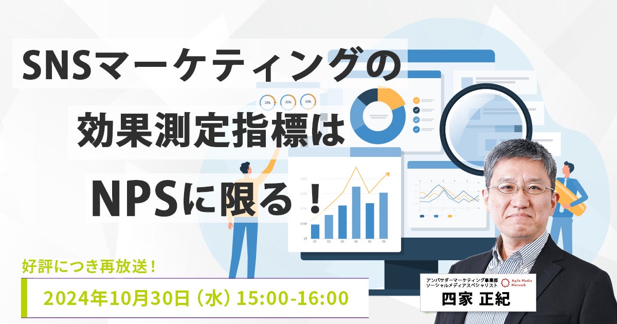 『世界中の“好き”を加速する』をビジョンに掲げ、ブランドのファン育成・活性化を手がけるアジャイルメディア・ネットワーク株式会社(本社:東京都港区、代表取締役社長:寺本直樹、東証グロース上場:証券コード6573、以下AMN)は、このたびオンラインセミナー『SNSマーケティングの効果測定指標はNPSに限る!』を開催いたします。