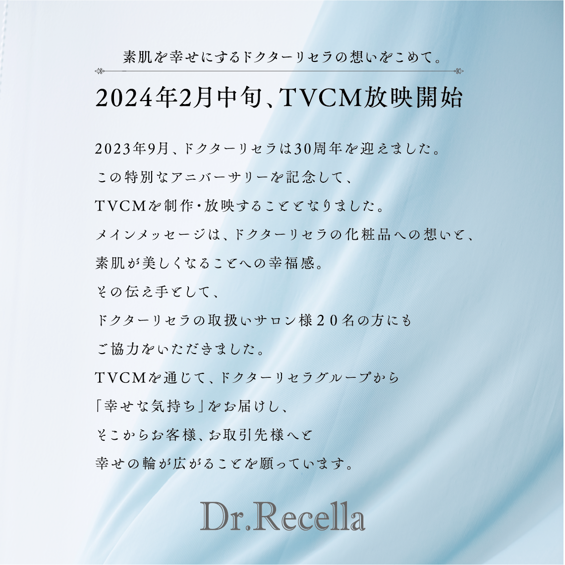 約8万人以上をノーファンデーションの素肌に導いた"ドクターリセラ"が、創業30周年を記念した新テレビCMを、2024年2月15日(木)より放映開始!