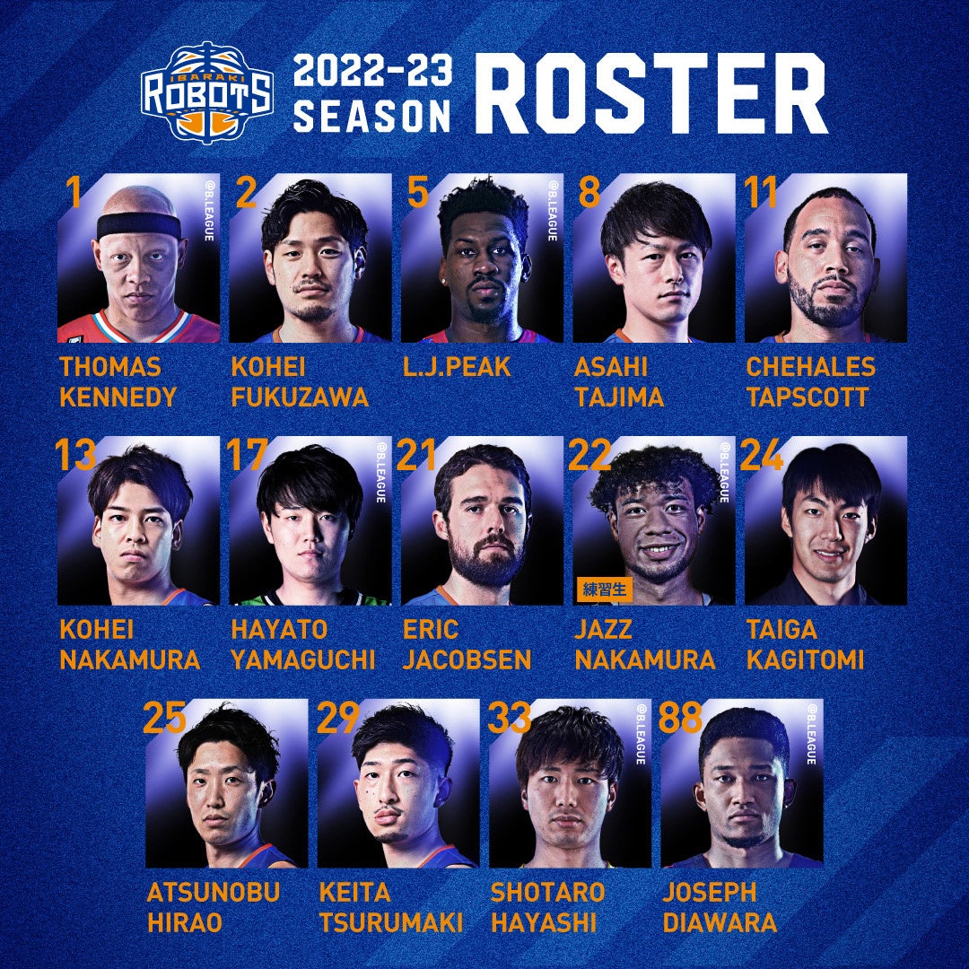 以上のメンバーで、ロボッツファミリーの皆様と共に、2022-23シーズンを戦い抜いてまいります。今後の茨城ロボッツに、ぜひご注⽬ください。